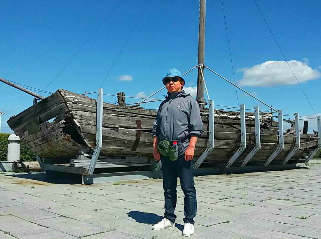 第二天清晨,按計劃我們驅車趕往丹東博物館參觀。座落在郊外的一幢粉色小楼呈現在大家眼前,當兩名保安打開院門,告訴我們這就是博物館時,心裡不免覺得有些失望,與預期的真是大相徑庭,(殊不知這卻是東北第一關)樓內只有三間不大的屋子作為展廳開放,有一間屋子是辦公室,屋內的辦公設施都比較簡單實用,依然保持良好,另外兩間有幾樣當年的漕運'b4b所用物品,以及安東歷史簡介和許多珍貴照片。 出了後門就是一個比較寬敞的院子,靠東側停放一艘百年的木帆船。船木大都已經腐敗,但整體結構還是比較完整,四周用鋼架固定。這艘“安東漕船”大概是1896年前後建造的。