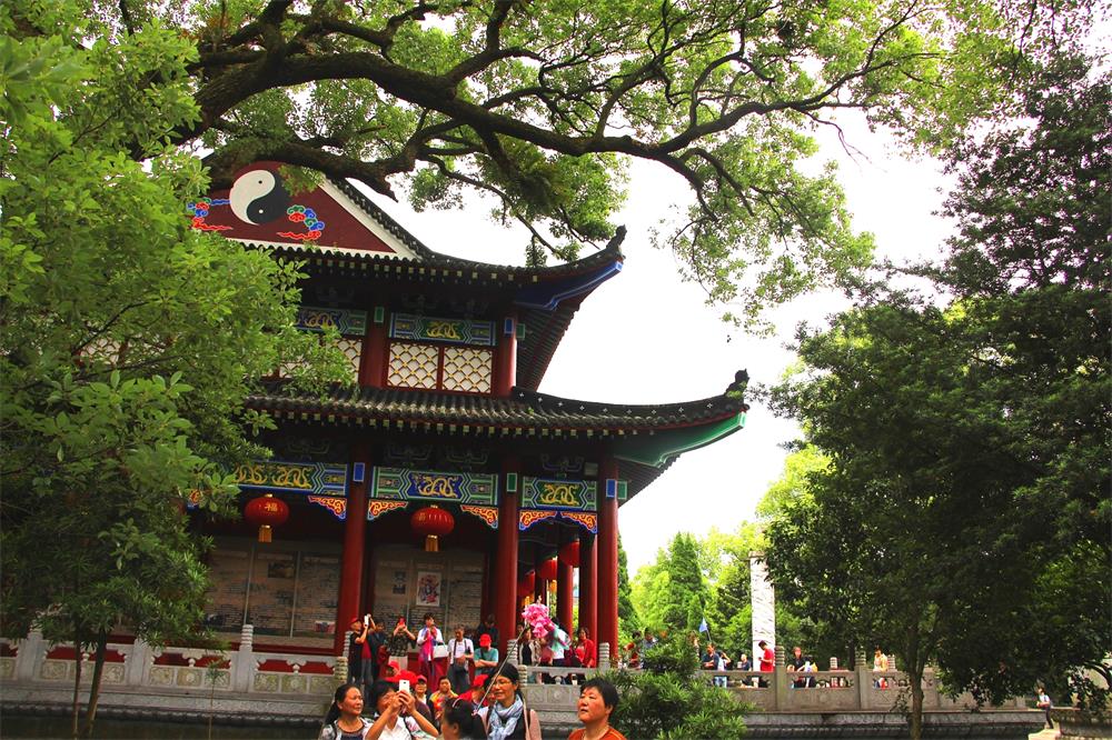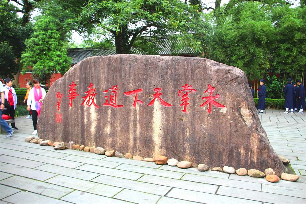 始建于北宋崇宁四年(公元1105年),是宋徽宗赐予第三十代天师张继先居住的府第。原建于上清镇关门口,元延祐六年(公元1319年),迁建于现在遗址。天师府为前宫后府式建筑,是历代道教天师掌管天下道教事务的办公衙门。府内的“万法宗坛”是道教正一派宗坛,有万法归宗旨意。以此为标志,确立了龙虎山道教祖庭地位。我们来此游览之际,正遇上道教的一群学子毕业,几十个门徒清一色的学士打扮,好一个与众不同的阵式,也算让我们见得一新鲜。(完)