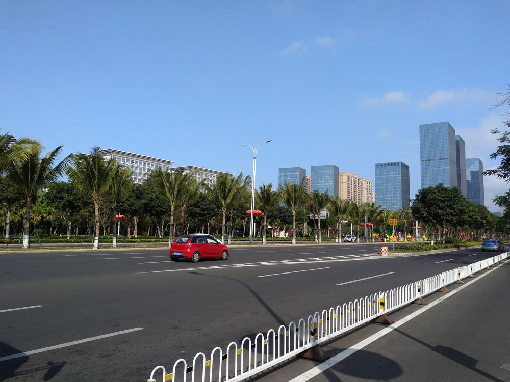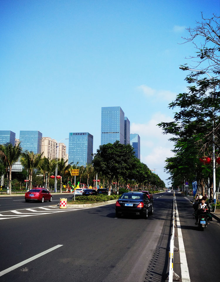 国兴大道,无疑是海南海口市最著名的通衢大道,贯穿主城东西,双向八车道,长有五公里,宽60-80米,连接南渡江琼州大桥和海秀快速路。