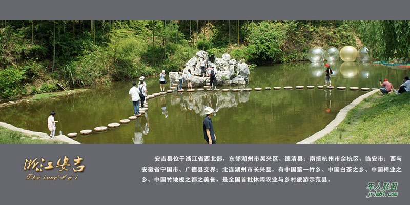 安吉山清水秀,环境优美,也是长江三角洲经济区内一颗璀璨的绿色明珠。这里“川原五十里、修竹半其间”;这里,“修竹拂云当户耸,暗泉明玉绕亭飞”,素有“中国竹乡”之美誉。这里有世界上散生、混生竹种最为齐全的安吉竹博园,有“竹类大观园”之称,园内的中国竹子博物馆收录了人类五、六千年的竹文化史;亚洲第一的天荒坪抽水蓄能电站雄伟壮观;《卧虎藏龙》、《像雾像雨又像风》外景拍摄地中国大竹海;森林公园灵峰寺千年古刹钟鼓悠扬;黄浦江源—龙王山无限风光在颠峰。
