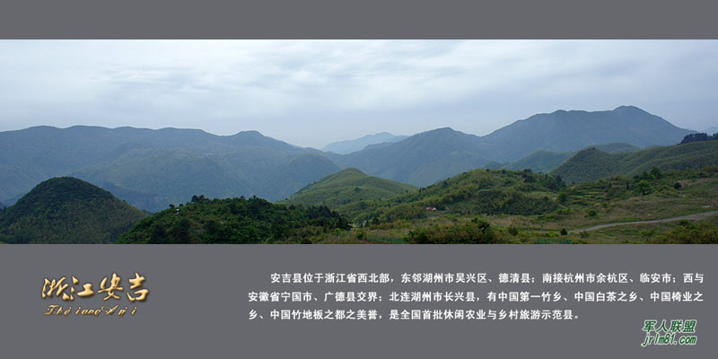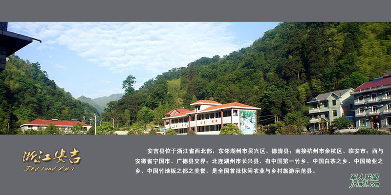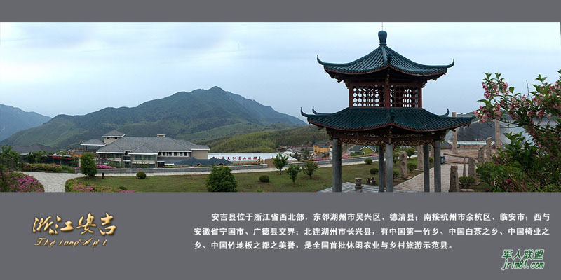 安吉县位于浙江省西北部,是长江三角洲经济区迅速崛起的一个对外开放景区,县域面积1886平方公里,常住人口46万人,建县于公元185年,取《诗经》“安且吉兮”之意得名。东邻湖州市吴兴区、德清县;南接杭州市余杭区、临安市;西与安徽省宁国市、广德县交界;北连湖州市长兴县。建县于东汉中平二年,至今已有1800多年历史。
