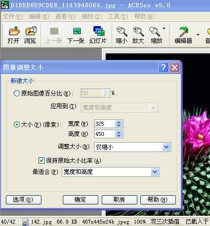 第2步 点击“工具”按钮,再点击出来的下拉框中的“调整大小”,就出来了下面的对话框: