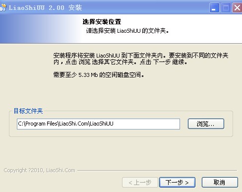 第3步 上图中是安装画面,首先选择程序的安装位置,然后点击“下一步”,就又出来一个对话框,如下图:
