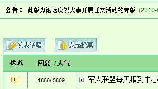 首先请发帖人进入《征文专版》,打开网页后,点击“发表话题”。请看下图: