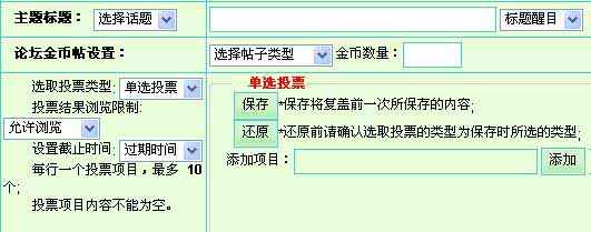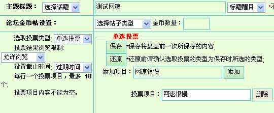 点击“发起投票”后,就打开了发帖和投票页面。在此页面上有多个选项。如下图: