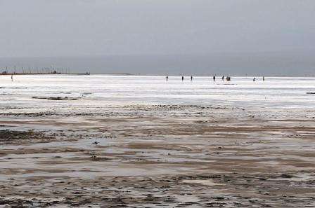 天水一色,牛羊成群。好景观!欣赏了。