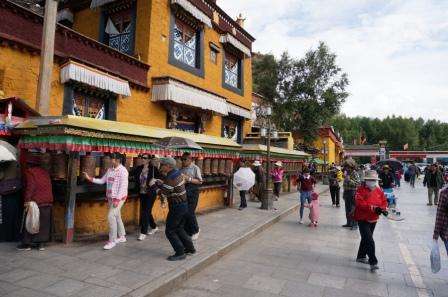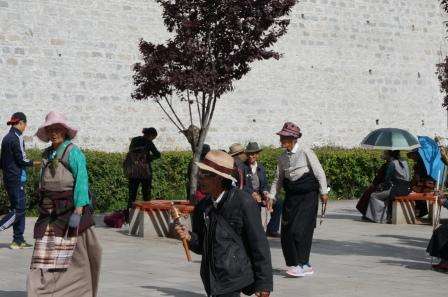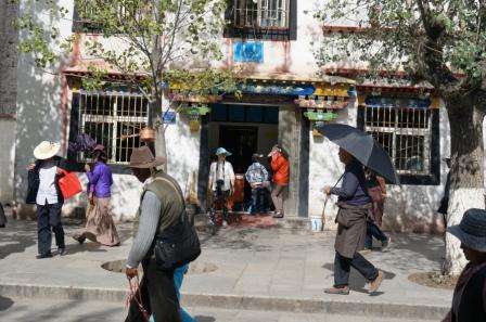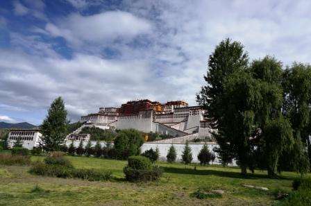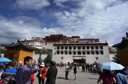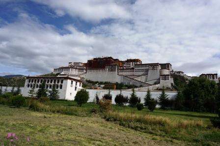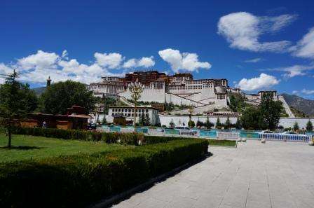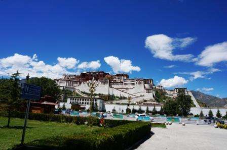 八月7号19:10 ,T165次特快列车缓缓驶入拉萨火车站,西藏拉萨终于到了。七八月份正是去西藏旅游高峰期,早就听说这个时期在拉萨住宿特别紧张。前几天在“去西藏结伴群”里结识一个网名叫夏至的河北姑娘,她住在拉萨“野狼户外俱乐部”青年旅舍,通过夏至给我和另一名同伴订了二个床位,30元住一晚,这位夏至姑娘特别热情,为人也好,她带着另一个网名叫“小c”的江西姑娘和两条极白的哈达,提前到火车站出站口处等着我们到来,我们出站见面后,两位姑娘为我们献上极白的哈达,一道乘车前往“野狼户外俱乐部”住下。为了防止发生高原反应,没有洗澡也没有洗头洗脸,住下后倒床就睡觉,一直睡到第二天十点起床,吃过早饭后去布达拉宫附近转转。从不同角度拍了布达拉宫及周围街景。