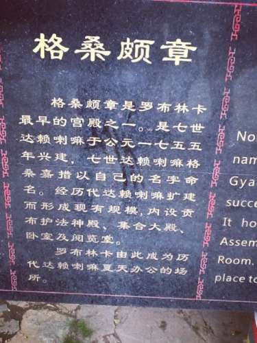 罗布林卡坐落于拉萨市西郊,藏语意为“宝贝园林”。罗布林卡始建于18世纪40年代达赖七世时,后经历代扩建并成为达赖喇嘛的夏宫。每年藏历4月至9月,达赖在这里处理政事,举行庆典。 全园占地约36万平方米,分为宫区、宫前区、森林区3个部分。森林面积约占全园的一半,是西藏最富特色的园林。 宫内主要建筑有金色颇章(“颇章”藏语意为“宫殿”)、讲经院以及1954年新建的达旦米久颇章(俗称新宫)等。