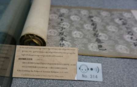 “西藏博物馆”馆名由江泽民总书记题写,藏文馆名是从17世纪金写《大藏经》上临摹下来的。