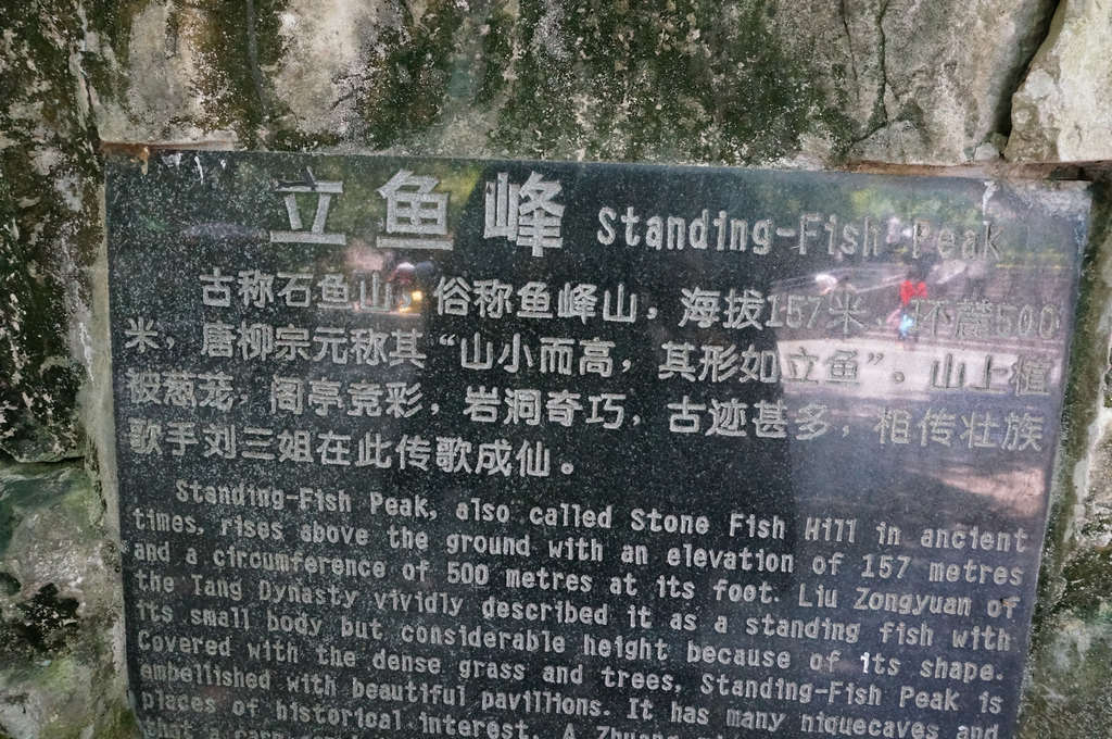 柳州鱼峰公园以景区内立鱼峰山而得名。 立鱼峰风景区是柳州最主要的名山之一,位于柳江南岸闹市区,东与马鞍山相望,南对柳州市工人医院。平地崛起,突兀耸秀,通高68米,海拔156.3米,呈东西走向,长145米,环麓500米。唐代文学家柳宗元称其“山小而高,其形如立鱼”,故得名立鱼峰,也叫石鱼山,习称鱼峰山。公园因此山峰而得名。
