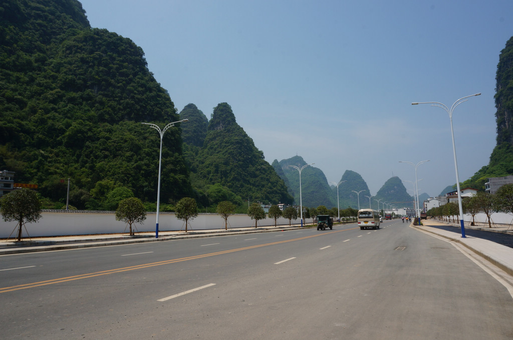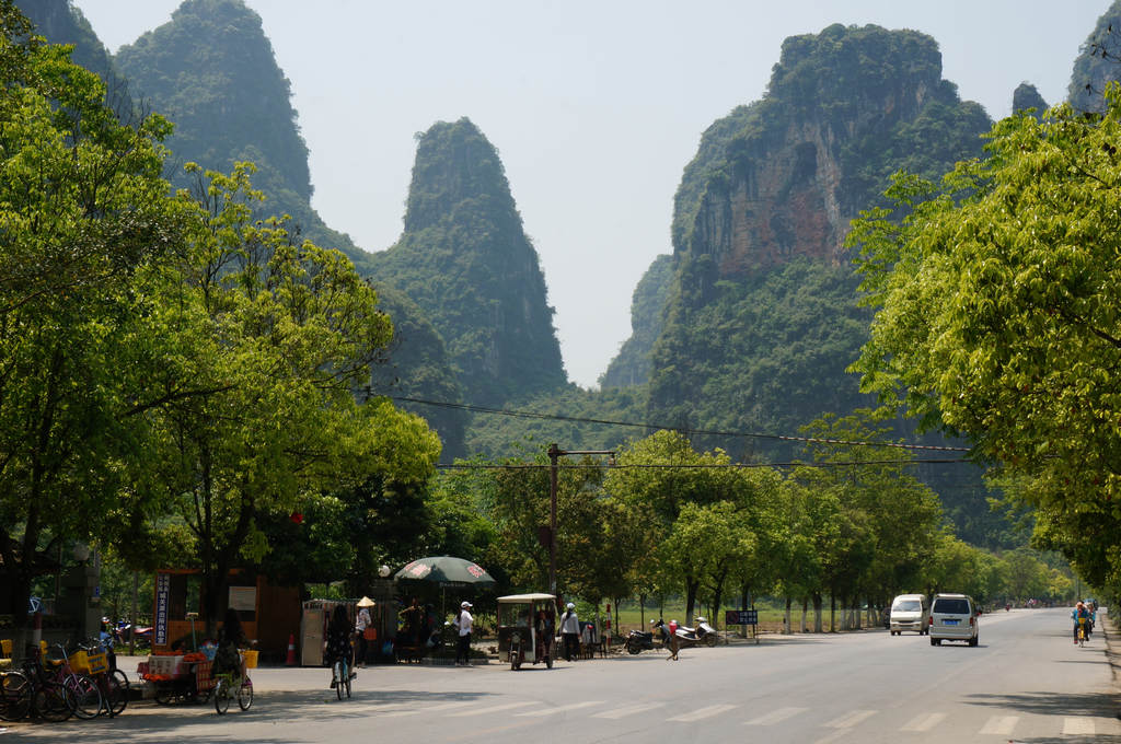 从柳州经荔浦到阳朔县城,全程大约190公里,分二天骑行,第一天骑行到荔浦,行程143公里,晚上住荔浦县城。第二从荔浦到阳朔只有40多公里,骑行任务不重,一个人边骑边玩,经过阳朔十里画廊时,干脆下车推车步行,边走边赏路边风景。