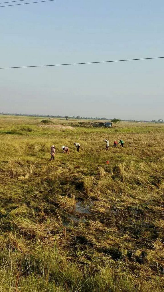 当地群众正在收割稻子